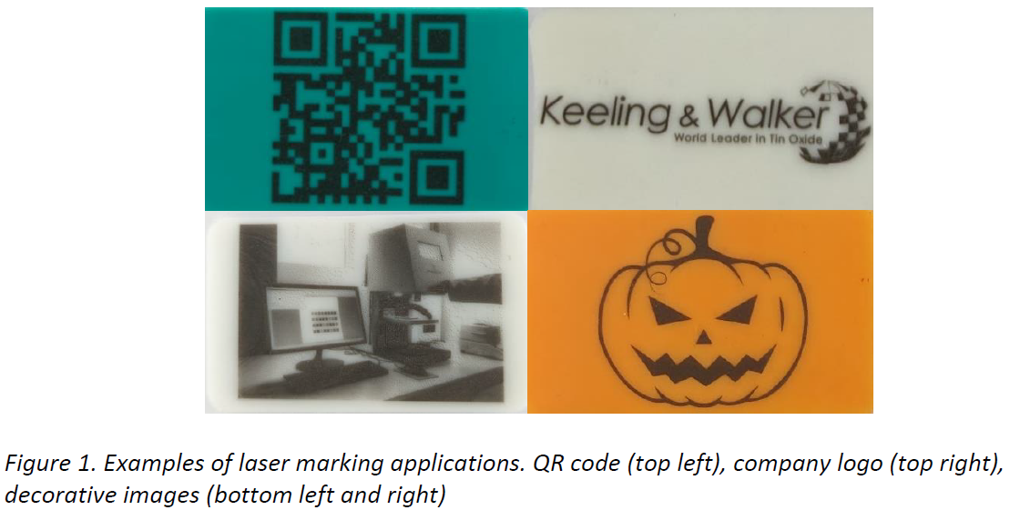 Keeling & Walker Ltd. offers a range of laser marking additives suitable for dark marks on white or coloured polymers as well as light marks on black polymers.